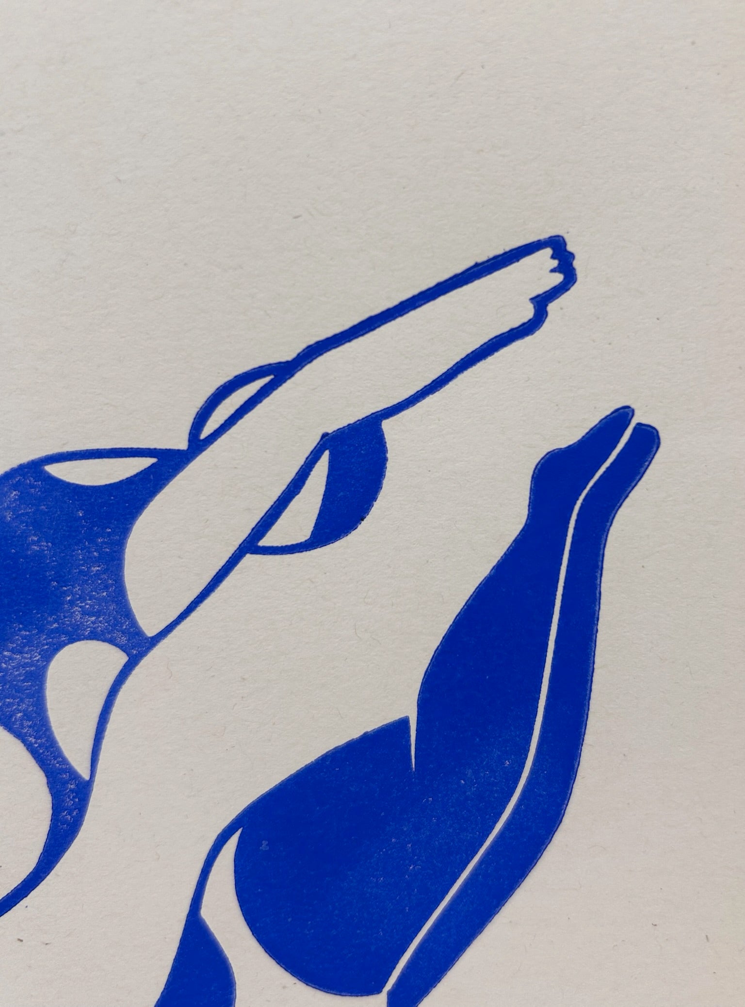 Handprinted A5 linocut on recycled fleck paper. Embossed.