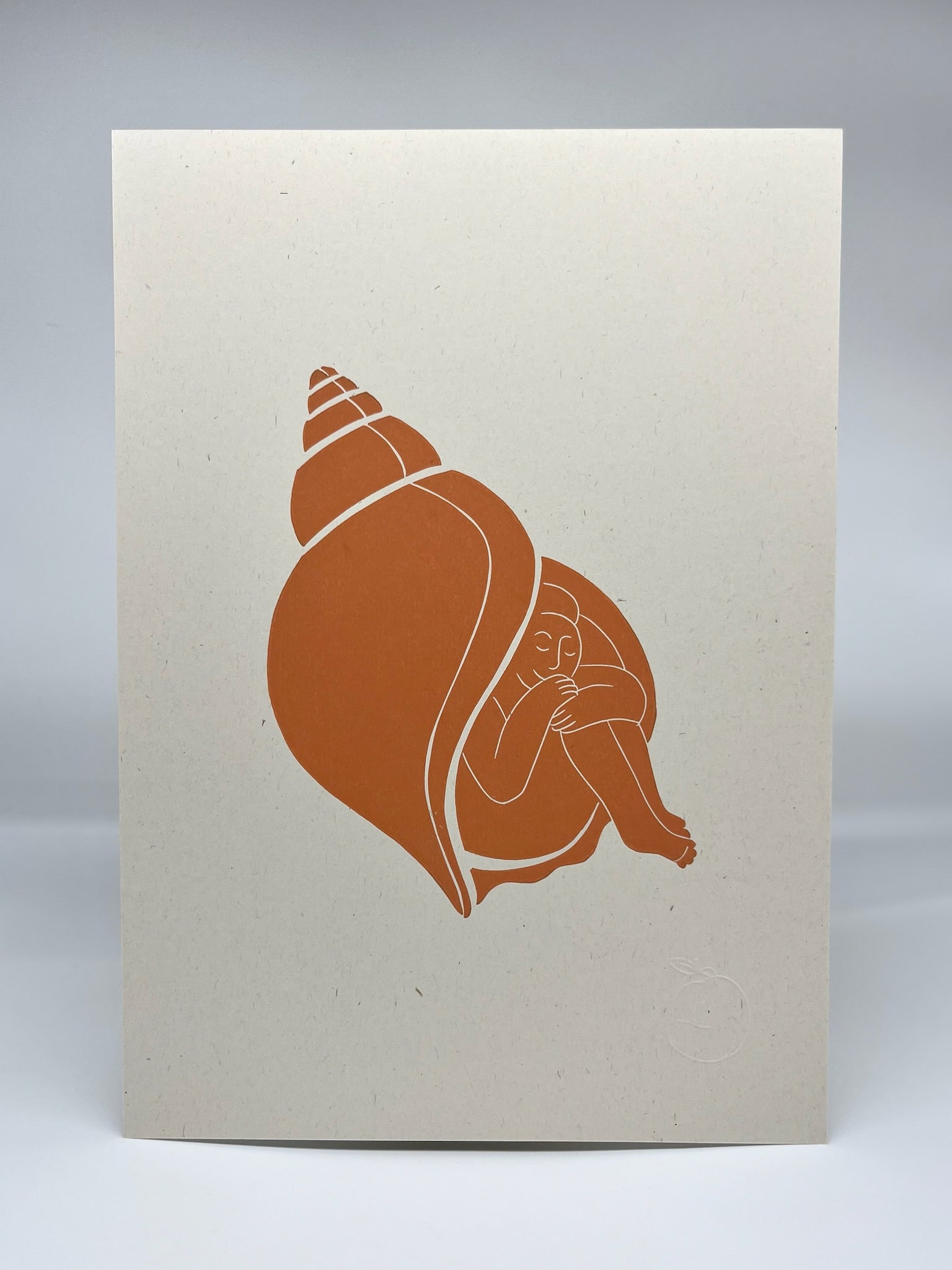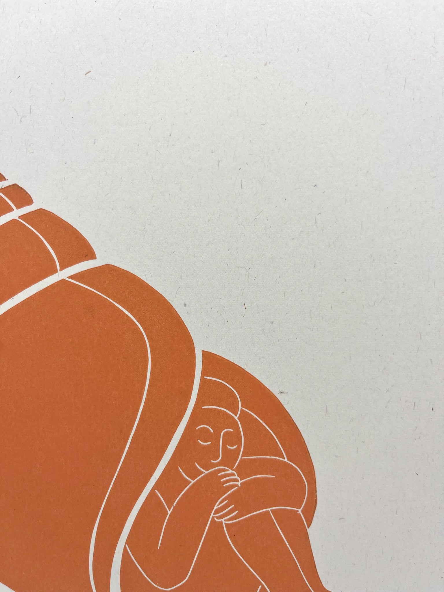 Handprinted A4 linocut on recycled fleck paper. Embossed.