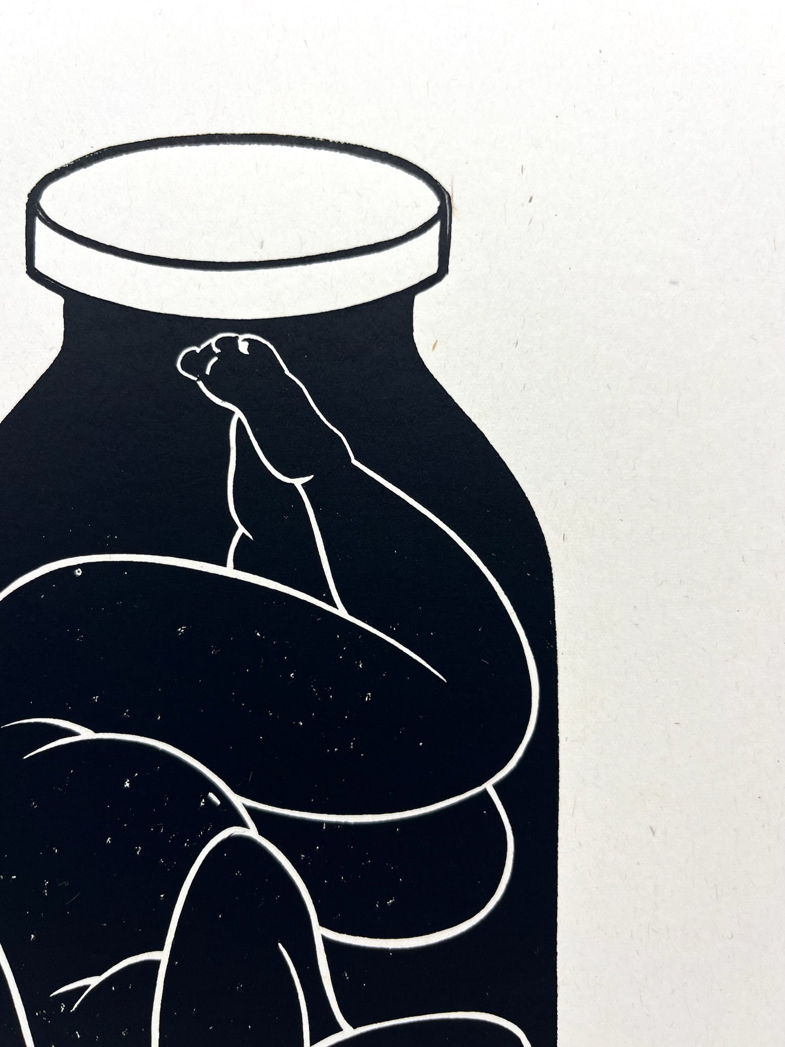 Handprinted A4 linocut on recycled fleck paper. Embossed.