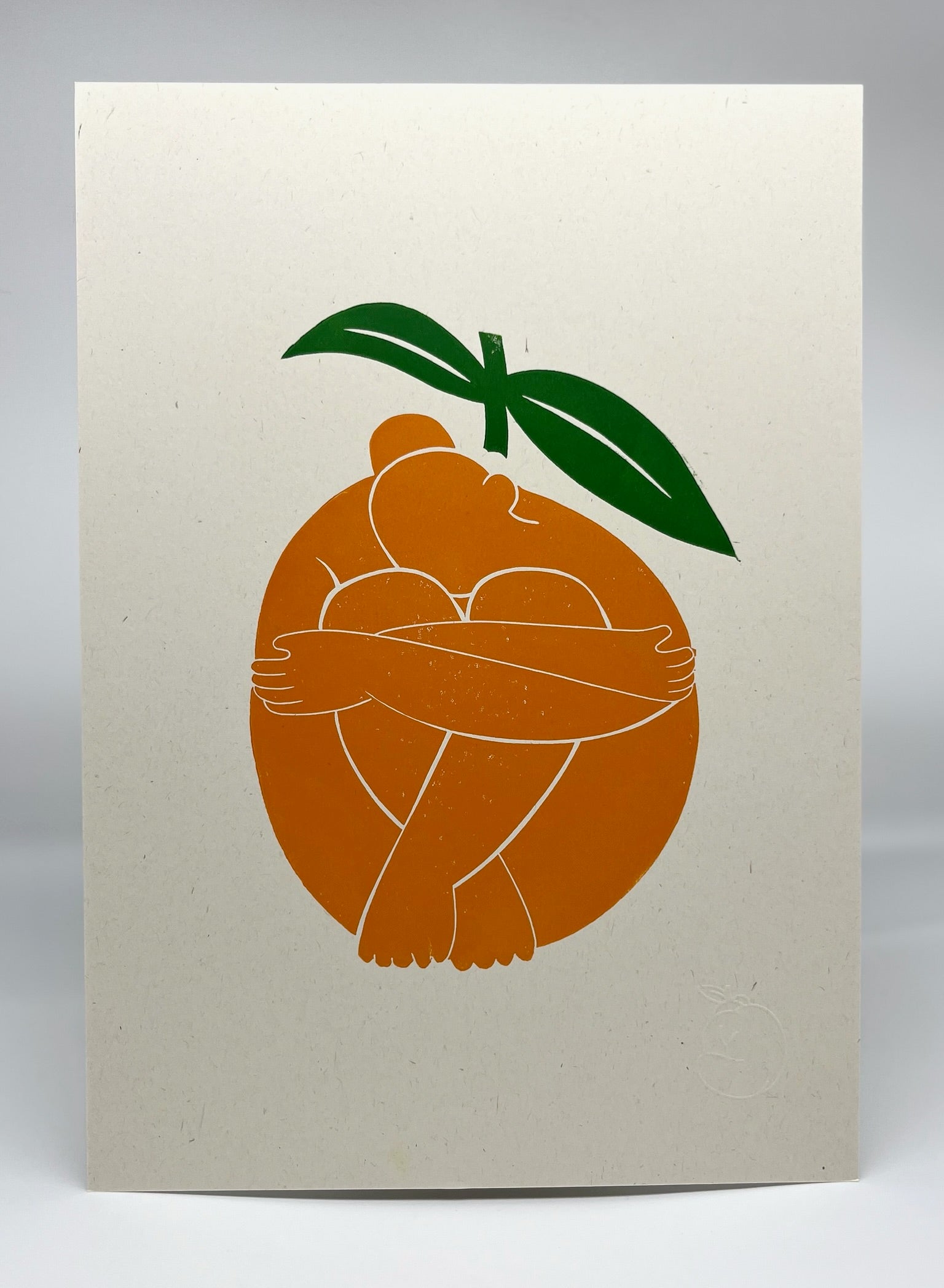 Handprinted A4 linocut on recycled fleck paper. Embossed.