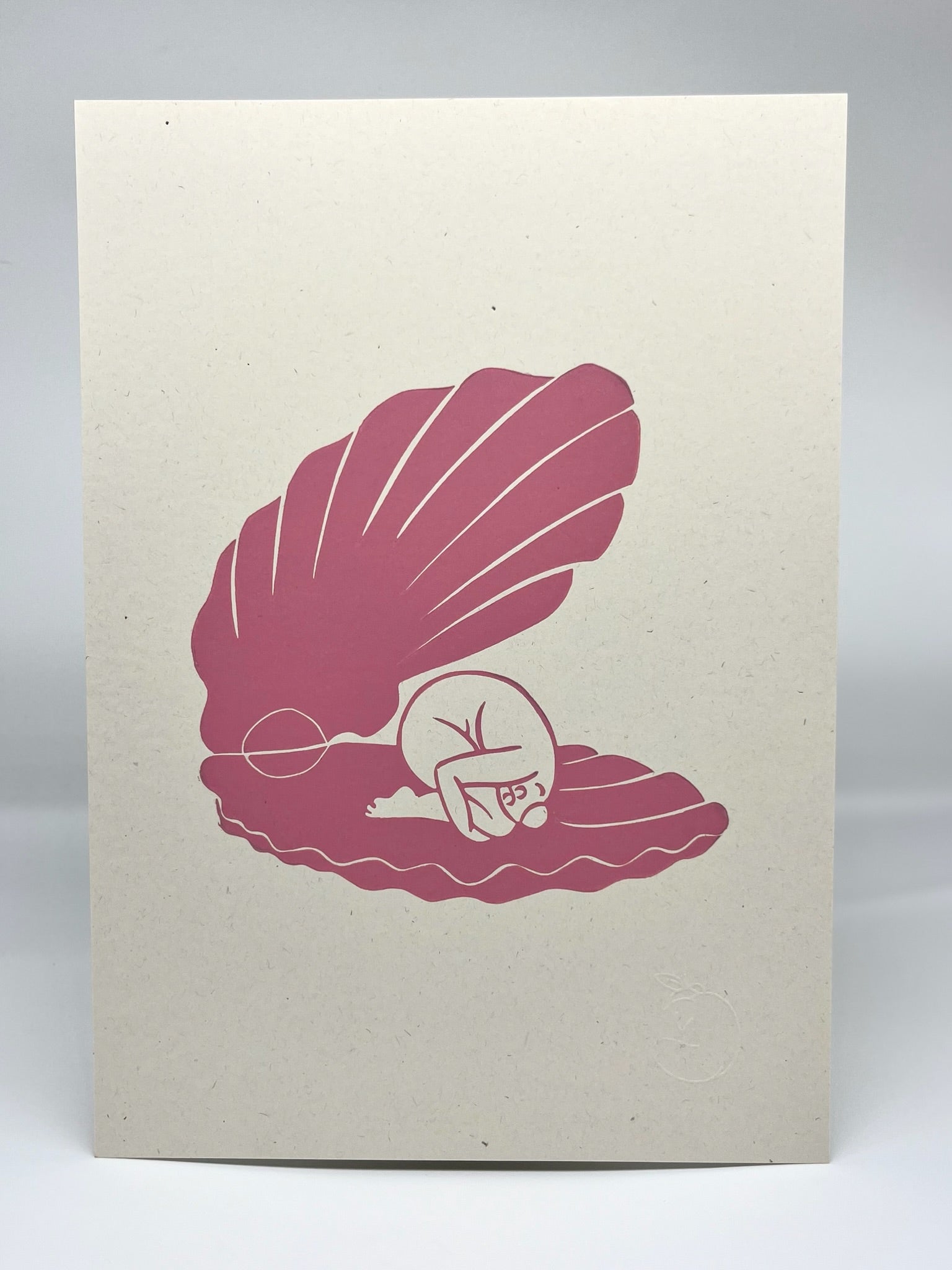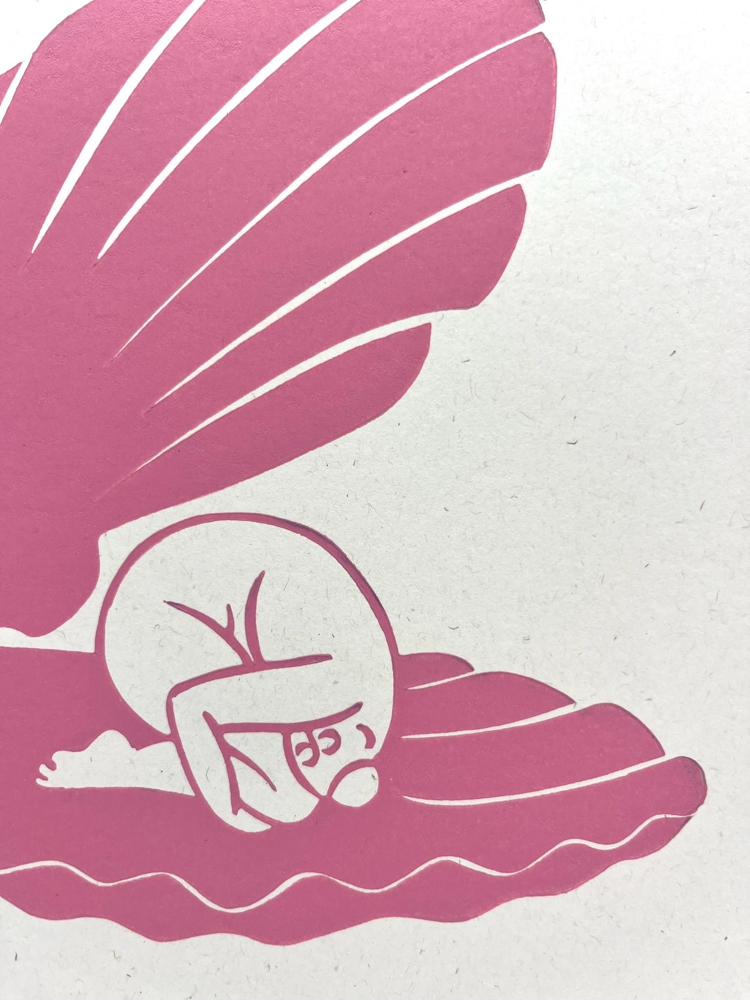 Handprinted A4 linocut on recycled fleck paper. Embossed.