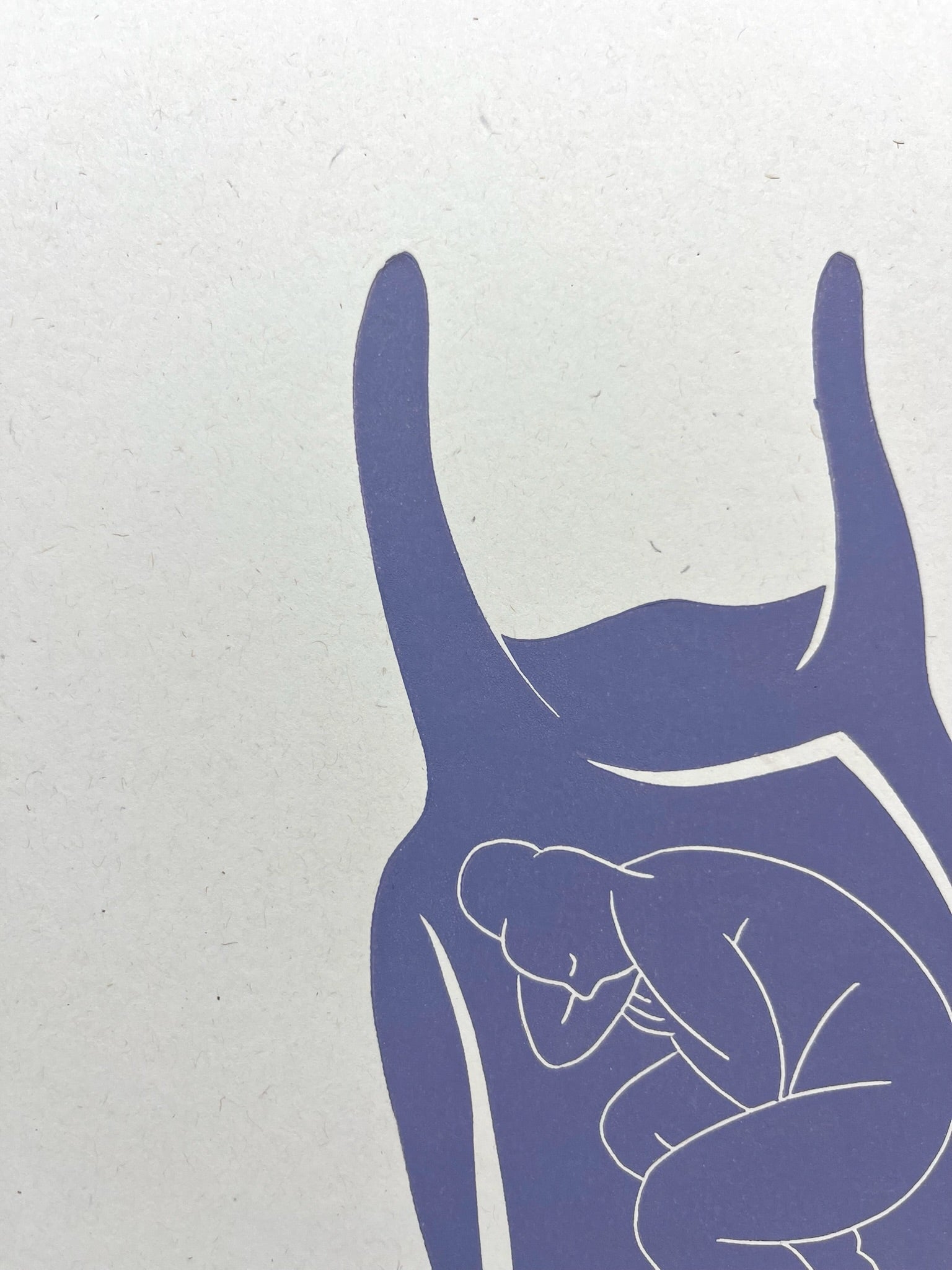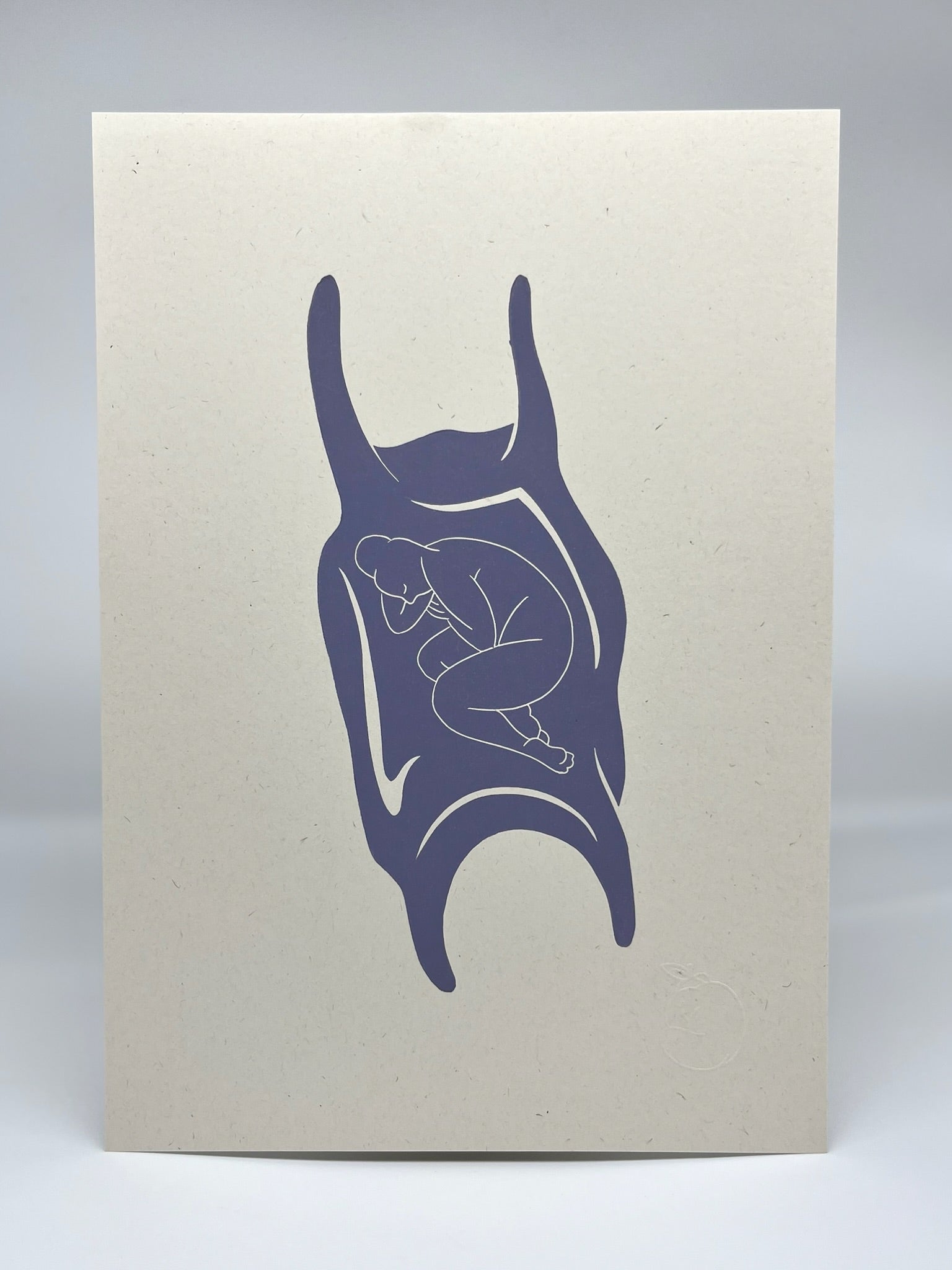Handprinted A4 linocut on recycled fleck paper. Embossed.
