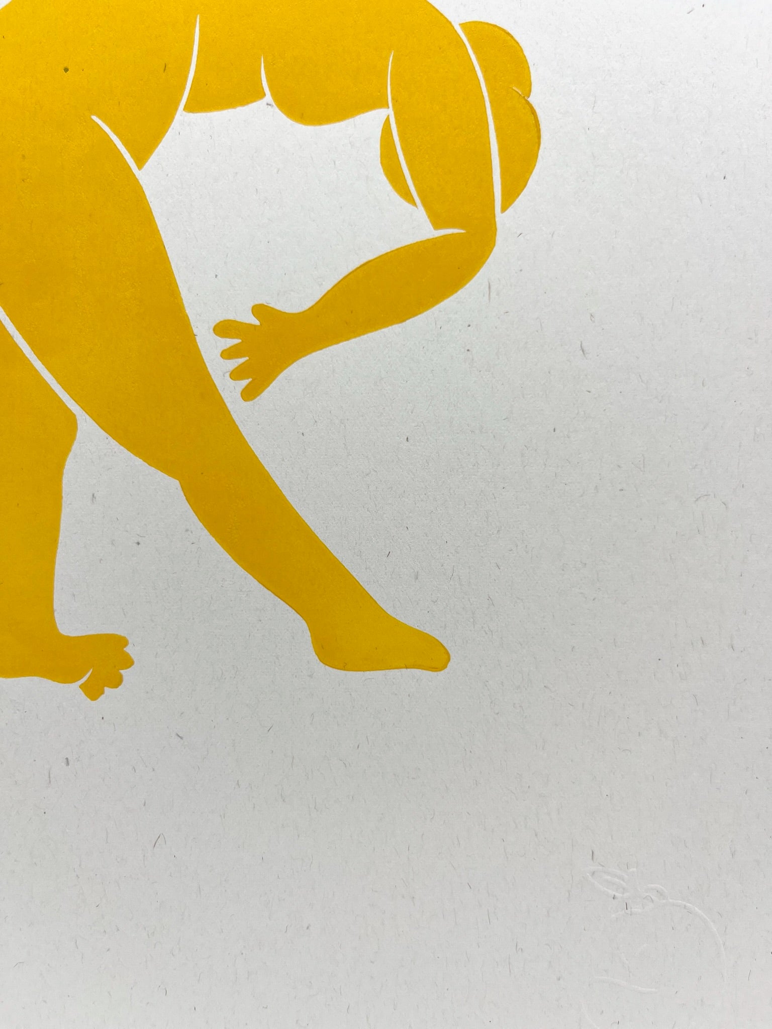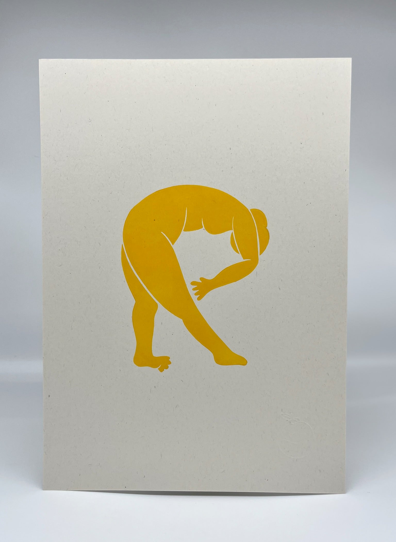 Handprinted A4 linocut on recycled fleck paper. Embossed.